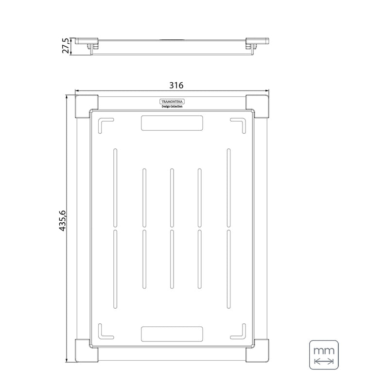 El bandeja perforada en acero inoxidable ayuda en la limpieza de la comida y el suministro de platos después del lavado.Compatible con varios modelos de las líneas Vitrum y Quadrum.