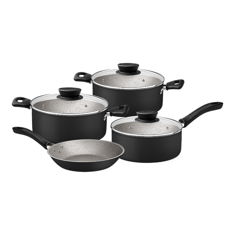 Transforme su cocina con la batería de cocina Tramontina Linz en aluminio con revestimiento interno y externo en antiadherente Starflon Max negro de 7 piezas. Diseñada para el uso diario, esta batería combina practicidad y durabilidad, ofreciendo una cocción rápida y uniforme gracias a su fabricación en aluminio de alta calidad. Su revestimiento antiadherente Starflon Max evita que los alimentos se peguen, lo que facilita la limpieza y hace que cocinar sea más cómodo.Las piezas incluyen tapas de vidrio templado con bordes de acero inoxidable, que permiten monitorear la preparación de los alimentos. Los mangos y asas están fabricados en baquelita y nylon, materiales antitérmicos que garantizan mayor seguridad y confort durante el uso. Compatibles con cocinas a gas, eléctricas y vitrocerámicas, estas ollas también son aptas para lavavajillas, ¡haciendo su rutina diaria aún más práctica y eficiente!