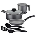 ¡Con el kit de cocina Tramontina Turim en aluminio con revestimiento interno y externo en antiadherente Starflon Max plomo de 6 piezas recibirá practicidad y calidad en las preparaciones! El revestimiento interno y externo es de antiadherente Starflon Max, un material que evita que los alimentos se peguen en las superficies, es fácil de limpiar, más durable y no perjudicial a la salud. Para un manejo más seguro, los mangos y las asas poseen un material antitérmico que no calienta. Además, las ollas y la cacerola incluyen tapas de vidrio templado con bordes de acero inoxidable, que ayudan y facilitan la preparación de sus recetas. También son muy prácticas y aptas para el lavavajillas, ¡lo que facilitará su rutina diaria!