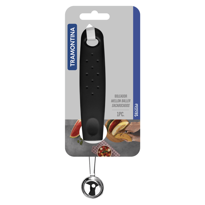 Con el boleador Tramontina Utilita de acero inoxidable con mango de polipropileno negro de 2 4 cm, usted podrá diversificar recetas e ingredientes a gusto. La línea Utilita ofrece utensilios que hacen la diferencia en el momento de preparar deliciosos platos, permitiendo que usted tenga en manos una pieza que dejará la ejecución todavía más práctica. El boleador se fabrica con lámina de acero inoxidable y con mango de polipropileno, materiales que garantizan su durabilidad, permitiendo que usted innove innumerables veces en la cocina.