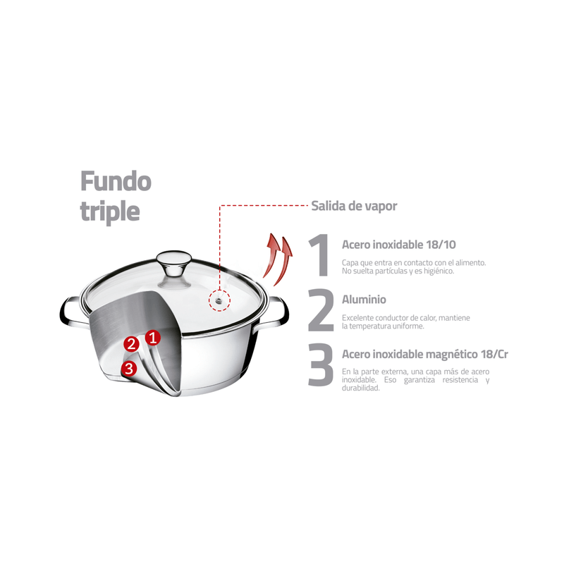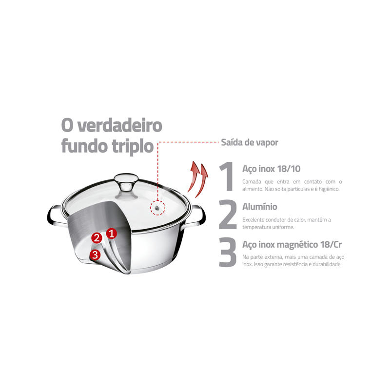 Quedará impresionado con la cacerola honda Allegra de acero inoxidable con fondo triple y tapa de vidrio de 22 cm de diámetro y 4 2 l Tramontina. Hecha de acero inoxidable con terminación en alto brillo y fondo triple (acero inoxidable + aluminio + acero inoxidable), distribuye el calor uniformemente, proporcionando una cocción más rápida y uniforme, ahorrando energía y manteniendo los alimentos calientes durante más tiempo. Es una cacerola perfecta para tener siempre en su cocina y que posee una tapa de vidrio con salida de vapor y encaje perfecto, se puede lavar diariamente en el lavavajillas y también se puede usar en varios tipos de cocinas. Los productos de la línea Allegra transformarán su cocina!