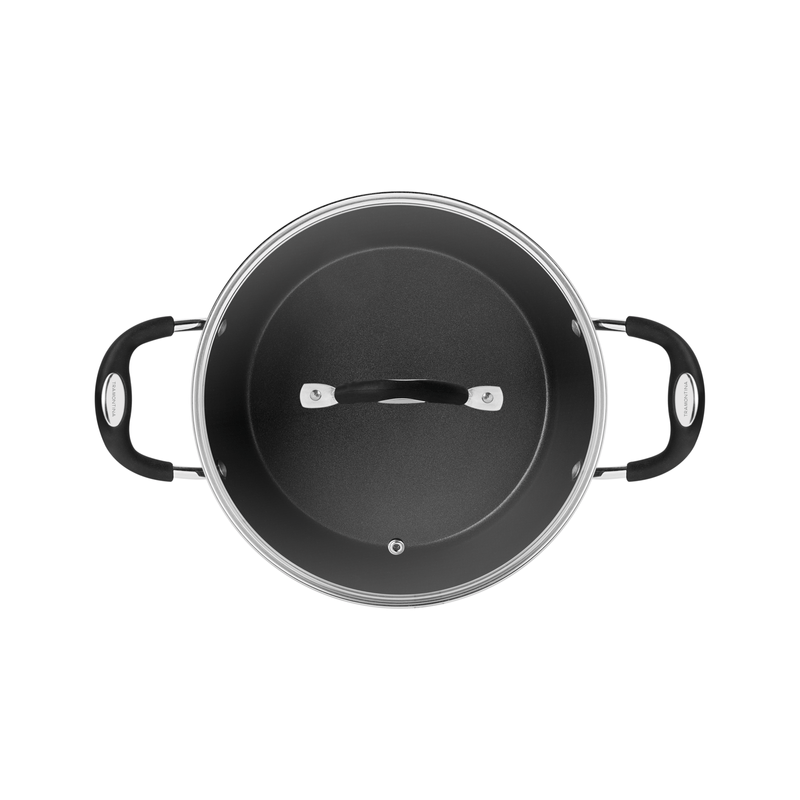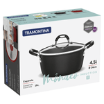 La cacerola Tramontina Mónaco Induction en aluminio con revestimiento interno y externo de antiadherente Starflon Premium negro con tapa de vidrio de 24 centímetros de diámetro y 4 5 litros es la elección ideal para ser parte de la preparación de sus comidas! Producida con cuerpo de aluminio de 3 mm de espesor que permite la cocción rápida y uniforme de los alimentos y con revestimiento de antiadherente Starflon Premium, es la elección perfecta para preparar deliciosas recetas, porque los alimentos no se pegan en la superficie y porque no es perjudicial a la salud. Su tapa es de vidrio templado con salida de vapor y borde en acero inoxidable, que ayuda y facilita la observación de los alimentos durante la preparación. Sus asas y el agarrador son metálicos y poseen protección de silicona, y permite la reducción de la propagación del calor, aumentando la seguridad y dejando su manipulación mucho más confortable. Además, es fácil de limpiar y apta para lavavajillas!