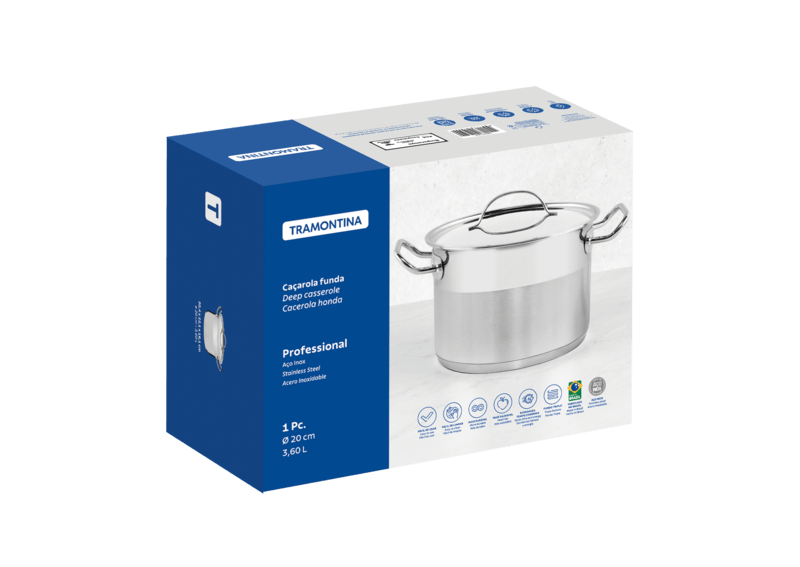 Para garantizar preparaciones aún más sabrosas la cacerola Tramontina honda de acero inoxidable fondo triple con tapa plana detalle satinado 20 cm de diámetro 3,6 L es la elección perfecta. Una opción de la línea Professional pensada para quien le gusta estar en la cocina. Sus asas dan más firmeza durante el manejo. Además de ser producida toda de acero inoxidable, trayendo brillo a la cocina y evitando que se liberen residuos en los alimentos, manteniéndolos sanos y sin alteración. El único sabor que prevalecerá es el sabor de su condimento. Hecha con fondo triple (acero inoxidable + aluminio + acero inoxidable) es posible cocinar más rápido, pues distribuye el calor uniformemente por la olla. La elección ideal para quien sabe la importancia de todas las etapas de la preparación de un plato.