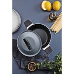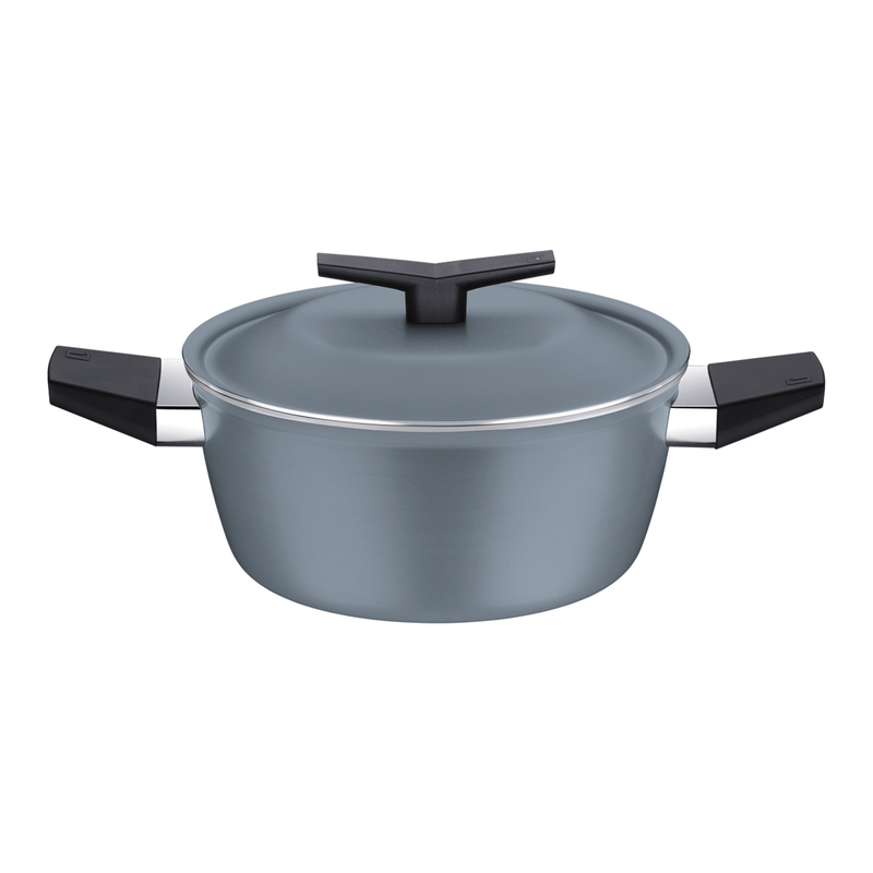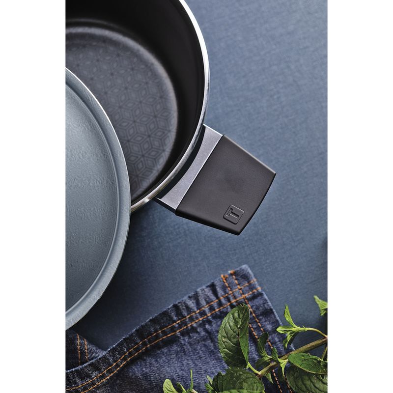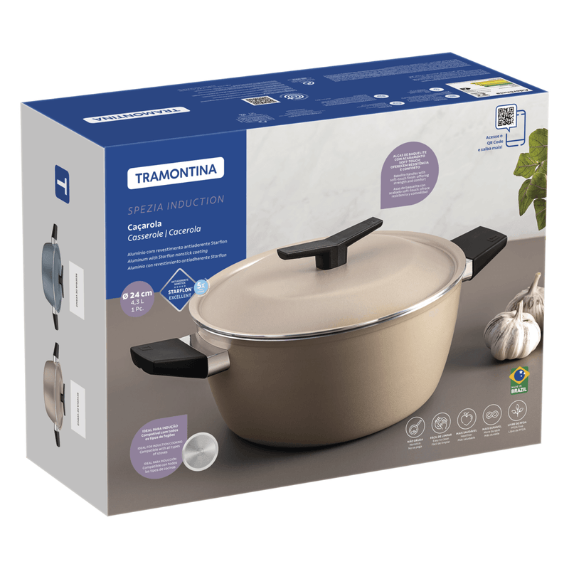 La cacerola Tramontina Spezia Induction en aluminio con revestimiento interno y externo en antiadherente Starflon Excellent azul de 24 centímetros de diámetro e 4 3 litros de capacidade facilita aún más la preparación de recetas más grandes. Fabricada en aluminio con antiadherente Starflon Excellent, facilita la limpieza y evita que los alimentos se peguen. Las asas son resistentes al calor y brindan seguridad durante el uso.