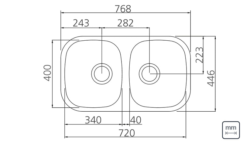 CocinaBachasCubeta Bajo Poner Isis 2C 34 BL en acero inoxidable cepillado 77x45 cm