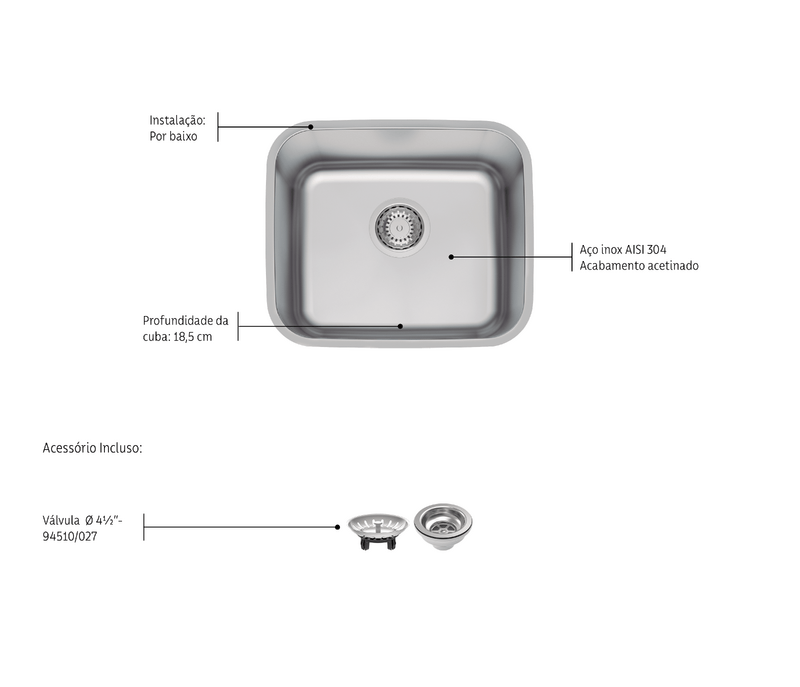 Lleva practicidad y estilo a tu cocina con la Cubeta de Bajo Poner Tramontina Dora 40 BL R6 de Acero Inoxidable Cepillado con Válvula 40 x 34 cm. Con profundidad de 185 milímetros, bordes redondeados y desagüe de 60 milímetros y fabricada totalmente en acero inoxidable, va a garantizar más facilidad en el momento de ejecutar tus tareas y garantizar alta resistencia y durabilidad. Con ella, vas a llevarle más elegancia y modernidad a tu cocina, porque tu terminación cepillado lleva brillo in encanto a tu cocina. Además, viene con una válvula de 4 1/2'' de diámetro, siendo perfecta para instalarse por debajo de las mesadas. ¡Con Tramontina, tienes lo mejor para completar tu casa!