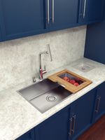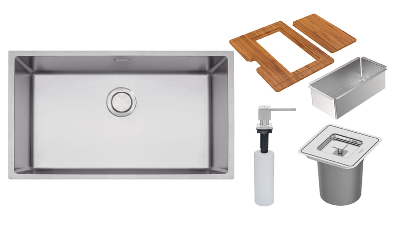 Elige la bacha de sobreponer Tramontina Design Collection Quadrum 70 de acero inoxidable con terminación satinado con dispensador de jabón, tabla, cesto colador y basurero cuadrado de embutir. Fabricada con la mejor tecnología Tramontina, tiene cuerpo de acero inoxidable con terminación satinado y 20,5 cm de profundidad. Además de todas esas características, también viene con dispensador de jabón, tabla de madera, cesto colador de acero inoxidable y basurero cuadrado de embutir, todo para dejar tu cocina mucho más completa y práctica. Su instalación se puede hacer en el modo semi-flush o flush (alineada a la mesada). Con Tramontina, garantizas una cocina mucho más funcional.
