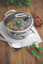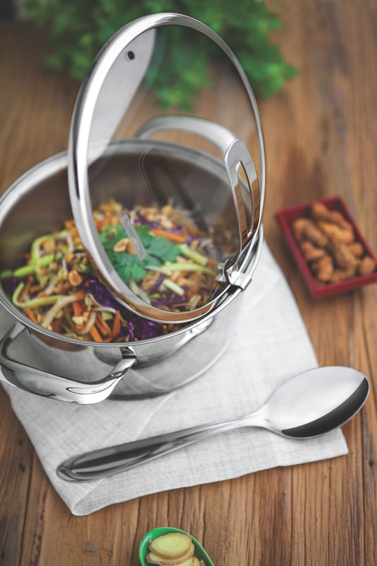 El arroz suelto y esponjoso que encanta a todos, será mucho más delicioso cuando se sirva con el cucharón para servir Laguna de acero inoxidable Tramontina. Esto se debe a que la pieza posee una terminación brillante y detalles en el mango, y por ser totalmente de acero inoxidable se puede lavar en el lavavajillas sin dañar sus características.