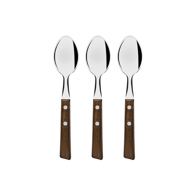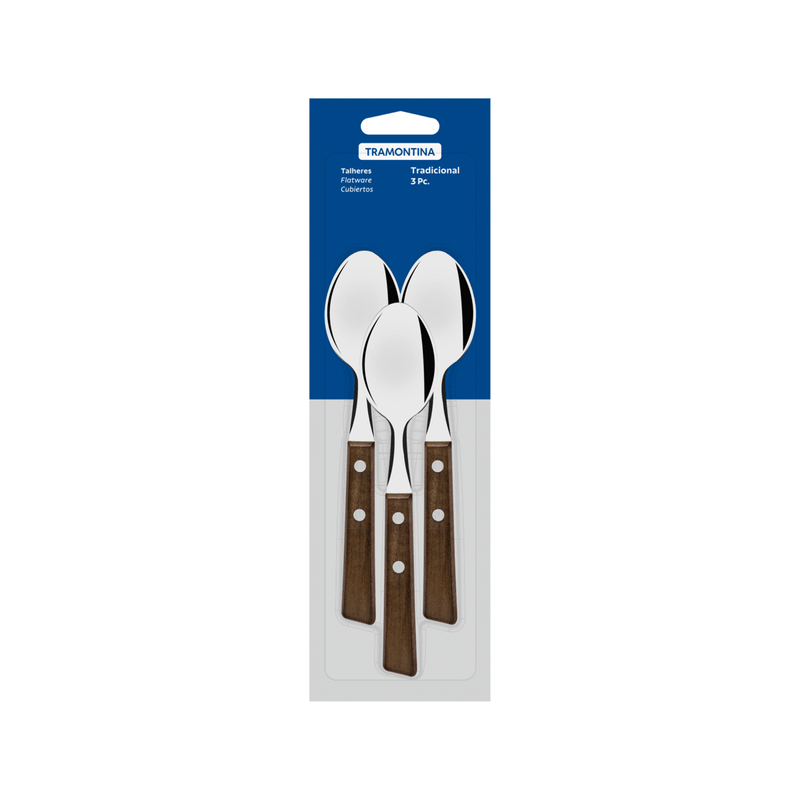 El juego de cucharas para té Tramontina Tradicional con láminas en acero inoxidable y mangos de madera natural de 03 piezas es perfecto para reunir a sus amigas y realizar un delicioso té de tarde en el jardín. Las piezas presentan durabilidad y resistencia, porque están producidas con láminas de acero inoxidable. Los mangos de madera natural con remaches de aluminio hacen que el armado de su mesa tenga un toque rústico y ofrece la belleza que merecen las ocasiones especiales!