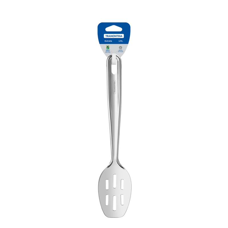 El acero inoxidable trae un brillo único a toda la cocina, además de proporcionar resistencia y durabilidad. La cuchara perforada para arroz Tramontina Extrata de acero inoxidable con terminación brillante ofrece toda la practicidad para los que aman cocinar, ya sea profesionalmente o como hobby. Perteneciente a la línea Extrata, le ofrece la posibilidad de ser parte de la decoración del lugar que es el corazón de la casa, porque su mango cuenta con un agujero que permite fijarla a la pared.