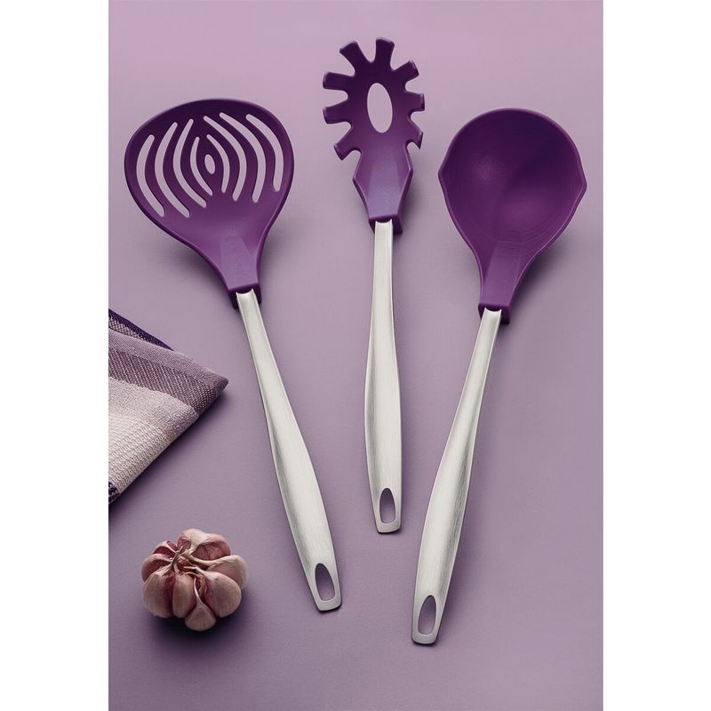 El cucharón Tramontina Movin en nylon con mango de acero inoxidable lila es una pieza esencial en su cocina! Pensado especialmente para usted y para hacer más práctico su día a día, es altamente resistente y durable, posee una escala de medidas y puede utilizarse a temperaturas de hasta 180 °C. Además de no retener los olores, es fácil de limpiar y apto para el lavavajillas. Una pieza con un diseño innovador y color vibrante, que completará su cocina!
