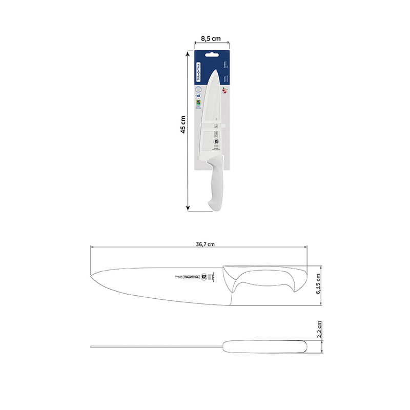 El cuchillo chef Tramontina Premium con lámina de acero inoxidable y mango de polipropileno blanco 10 pulgadas es el protagonista de la cocina para los que aman preparar sus recetas. Su lámina de 10 pulgadas es de acero inoxidable y tiene filo de corte altamente durable, debido al tratamiento térmico aplicado. Su mango anatómico y texturizado es de polipropileno blanco y proporciona un manejo mucho más seguro y cómodo. Además, es fácil de limpiar y se puede llevar al lavavajillas. Un cuchillo de calidad y con diseño perfecto para los que les gusta lucirse todos los días.