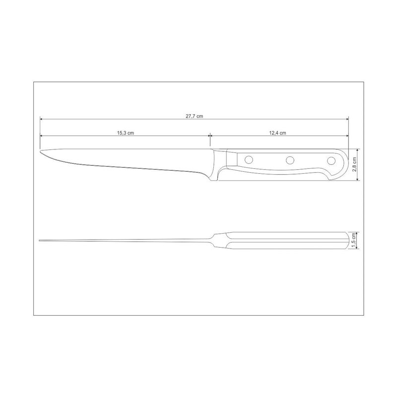 Con el cuchillo para deshuesar Tramontina Century con lámina de acero inoxidable y mango de policarbonato y fibra de vidrio, 6 pulgadas, usted podrá retirar toda la carne del hueso con mucha facilidad, pudiendo aprovechar completamente el ingrediente. La línea Century ofrece cuchillos de altísima calidad, que llevan eficiencia a toda la cocina. Su lámina se fabrica con acero inoxidable especial, y el mango de policarbonato con fibra de vidrio. Además, recibe tratamiento térmico compuesto por templado (calentamiento de la lámina), subcero (enfriamiento de -50 a -196 °C) revenido (aumento de la flexibilidad del acero especial), proporcionándole vida larga a la lámina. Para un manejo todavía más seguro y cómodo, el mango es anatómico y ergonómico. Con el cuchillo para deshuesar, su día a día será todavía más práctico y sus recetas más sabrosas.