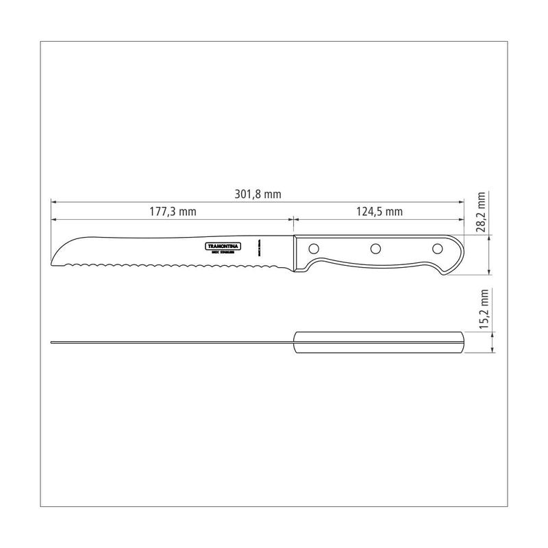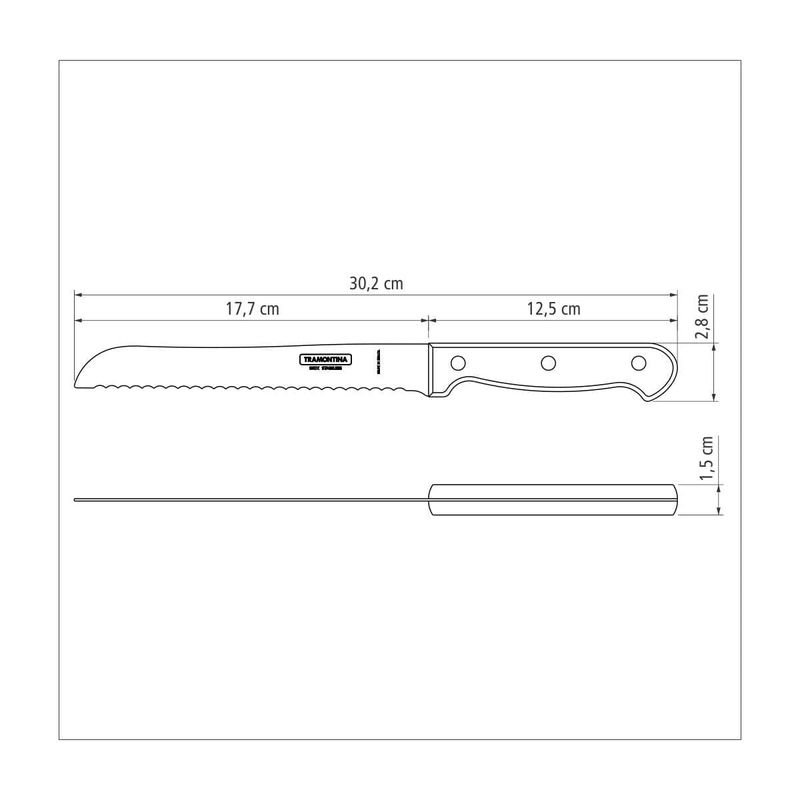 Ya sea para un momento informal o una ocasión especial, el cuchillo para pan Tramontina Polywood con lámina de acero inoxidable y mango de madera roja 7 pulgadas de la línea Polywood es la mejor elección. Su lámina dentada, permite cortar el pan sin aplastarlo. Además la lámina se fabrica en acero inoxidable con tratamiento térmico, ofreciendo todavía más resistencia y durabilidad durante el uso. El mango de madera tratada Polywood va a proporcionarle belleza a la mesa, manejo cómodo y alta durabilidad. Además de contar con resistencia a impactos y altas temperaturas. ¡Tenga en su casa productos prácticos y de calidad Tramontina!
