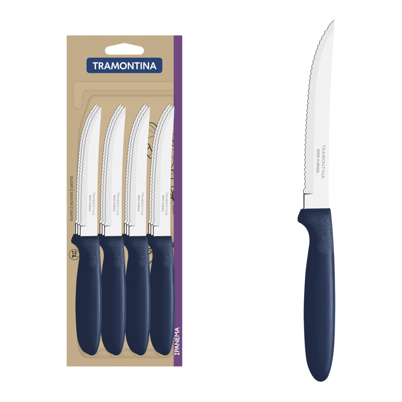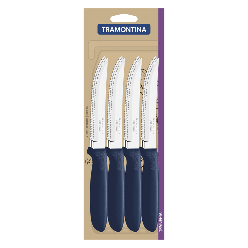 Para llevar más color y estilo a tu mesa, el juego de cuchillos para asado Tramontina Ipanema con láminas de acero inoxidable y mangos de polipropileno azul 12 piezas es la elección perfecta. Los cuchillos que componen el juego tienen láminas de acero inoxidable, que garantizan el corte perfecto de los alimentos durante las comidas. Los mangos se fabrican con polipropileno azul, proporcionando un manejo supercómodo y seguro, además de que el color le lleva mucho más estilo a tu mesa. Son todavía muy fáciles de limpiar y pueden llevarse al lavavajillas. Tu cocina merece los productos Tramontina de la línea Ipanema.