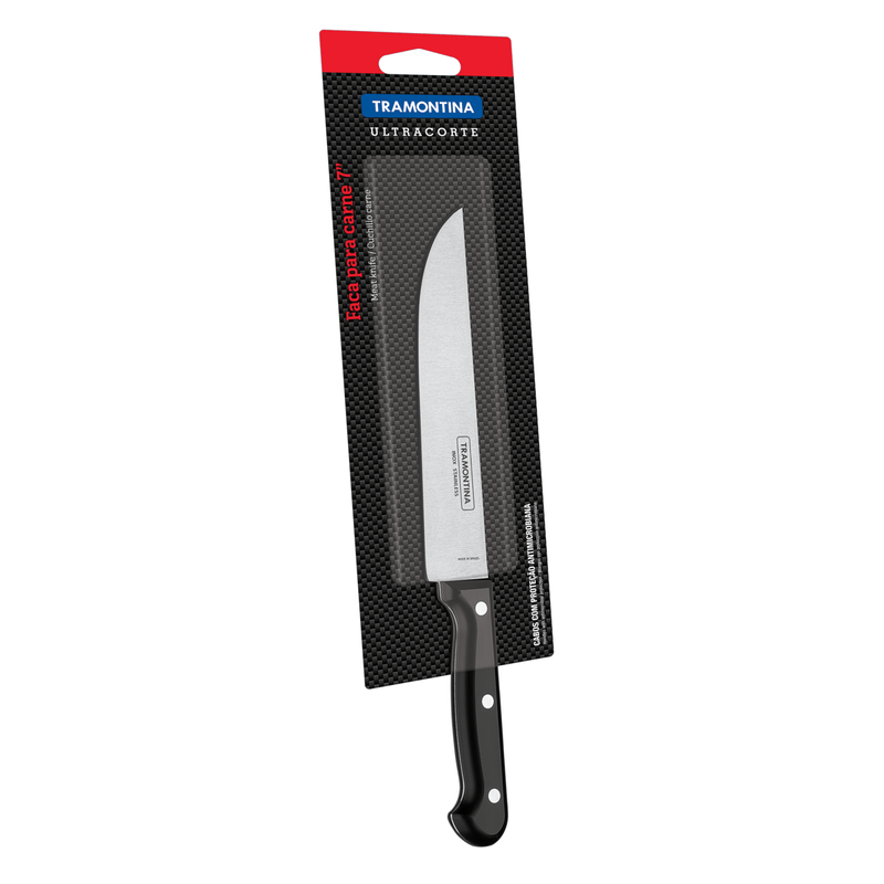 Los cuchillos de la Línea Ultracorte atienden a todas las necesidades de los que cocinan. Elija el adecuado para cada alimento. Las láminas de acero inoxidable reciben tratamiento térmico que le da mayor durabilidad al filo y protección antimicrobiana en los mangos de polipropileno que inhibe el crecimiento de bacterias y hongos. Se pueden lavar en lavavajillas.