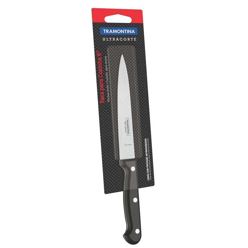 Los cuchillos de la Línea Ultracorte atienden a todas las necesidades de los que cocinan. Elija el adecuado para cada alimento. Las láminas de acero inoxidable reciben tratamiento térmico que le da mayor durabilidad al filo y protección antimicrobiana en los mangos de polipropileno que inhibe el crecimiento de bacterias y hongos. Se pueden lavar en lavavajillas.