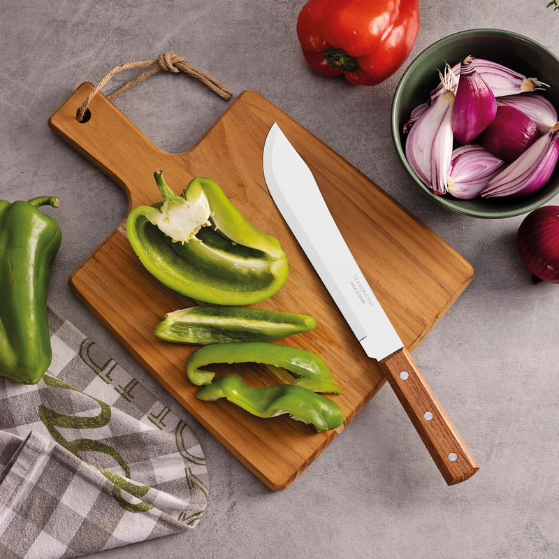 La manera de preparar sus recetas no será la misma con el cuchillo para cocina Tramontina Dynamic con lámina de acero inoxidable y mango de madera natural de 8 pulgadas. Con un aspecto rústico y distinguido, posee un mango de madera natural con remaches de aluminio y su lámina está fabricada en acero inoxidable. ¡Gracias a estas características, el cuchillo proporciona un excelente poder de corte y garantiza resistencia y mayor durabilidad!