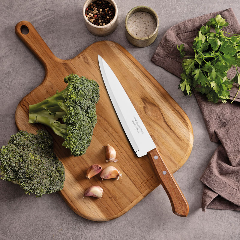 El cuchillo para pescado y cocina Tramontina Dynamic con lámina de acero inoxidable y mango de madera natural de 8 pulgadas hará que su día a día en la cocina sea mucho más práctico, ya que garantiza un corte eficiente para los alimentos más variados. Fabricado con lámina de acero inoxidable, garantiza un excelente hilo de corte. ¡Su mango es de madera natural, posee remaches de aluminio y garantiza un toque rústico para su cocina, además de mayor durabilidad y resistencia!
