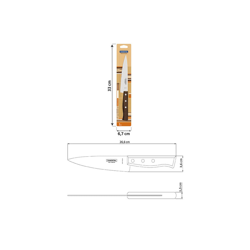 ¡Al momento de preparar un guiso de pescado necesita tener las piezas correctas para desempeñar un excelente trabajo en la cocina! Por ese motivo, el cuchillo para pescado y cocina Tramontina Tradicional con lámina en acero inoxidable y mango de madera natural de 6 pulgadas es la elección ideal para satisfacer sus necesidades. Con mango de madera natural con remaches de aluminio y lámina de acero inoxidable, es una pieza con un alto poder de corte, hilo durable y un toque rústico a su cocina. ¡El cuchillo para pescado puede emplearse en los más diversos alimentos y le garantizará mayor practicidad en sus tareas de cocina!