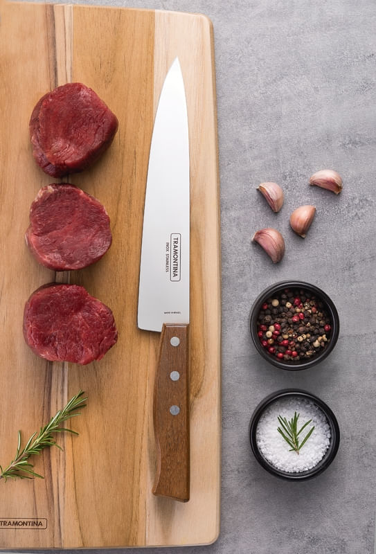 El cuchillo para pescado y cocina Tramontina Tradicional con lámina en acero inoxidable y mango de madera natural de 9 pulgadas le garantizará practicidad y funcionalidad en la preparación de sus comidas. Desarrollado para asegurar cortes de calidad, cuenta con una lámina de acero inoxidable que brinda un hilo de corte más resistente. ¡Su mango de madera natural proporciona mayor duración, además de un estilo rústico especial para su cocina y la rutina diaria!