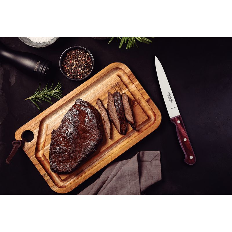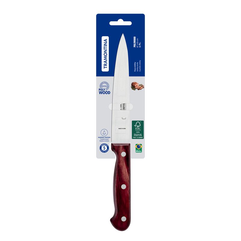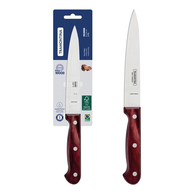 Su cocina quedará aún más completa con el cuchillo utility Tramontina Polywood con lámina de acero inoxidable y mango de madera tratada rojo de 6 pulgadas. Ideal para quienes buscan cuchillos de calidad y que proporcionen aún más practicidad para cortar carnes, frutas y verduras. El Cuchillo Utility de Tramontina está fabricado con lámina de acero inoxidable con un formato y espesor que garantizan resistencia y durabilidad. Y para otorgarle aún más belleza, cuenta con un mango de madera tratada Polywood, resistente a impactos y altas temperaturas, por lo que es muy duradero y ofrece un manejo cómodo. Tramontina piensa en usted y en su vida!
