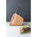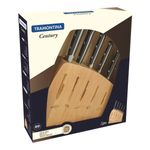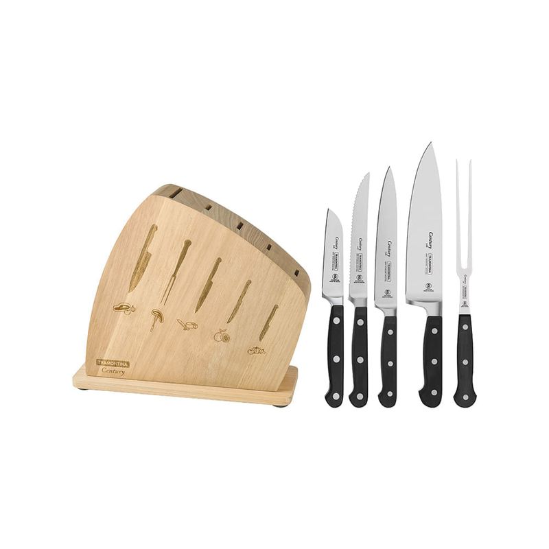 Para tú que adoras preparar carnes, asados, o cualquier otro plato con mucho sabor y consistencia, el artículo ideal para tener en tu cocina es un bello y elegante juego de cuchillos. Aprovecha todas las cualidades del Juego de Cuchillos Tramontina Century con Lámina de Acero Inoxidable y Mangos de Policarbonato y fibra de vidrio con soporte de madera 6 Piezas de la línea Century. Las piezas tienen lámina forjada de acero inoxidable de altísima calidad, aliada al eficiente tratamiento térmico diferenciado, compuesto de templado, subcero y revenido, además de dureza de 55 a 58 HR. El mango de cada uno de los cuchillos es de policarbonato reforzado con fibra de vidrio, que garantiza alta durabilidad, ergonomía y seguridad. Y, además de todo eso, el juego viene en un soporte elegante de madera, identificando el uso de cada cuchillo. Garantiza el tuyo ahora para hacer que tu cocina sea un lugar todavía más especial y que tus recetas sean un motivo de alegría para tu familia. Soporte de madera que le ofrece protección a las piezas.