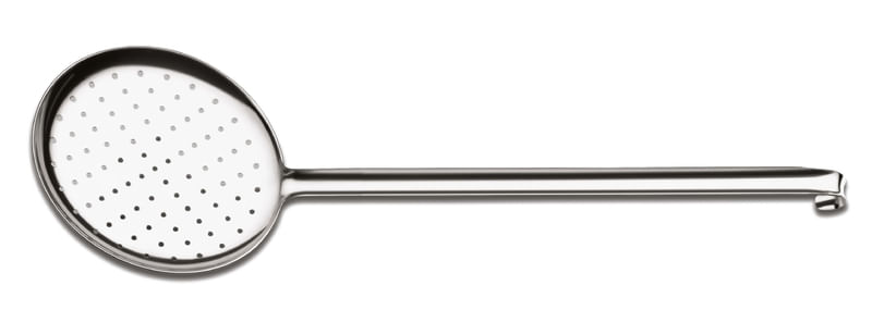 Make your professional food preparation even easier with Tramontina's Empresarial stainless steel medium long-handled skimmer. This highly durable skimmer has a mirror finish that provides beauty, functionality and elegance. Made entirely of non-toxic stainless steel, it keeps your food safe for consumption and preserves the flavor of your cooking.
