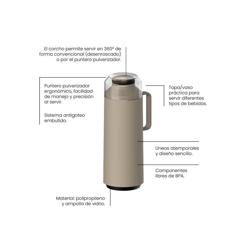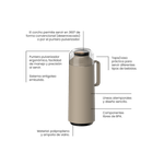 The Tramontina Exata beige Plastic thermos with 1-liter glass liner is indispensable for keeping your preferred beverage always ready for consumption. Suitable for hot and cold liquids, it maintains the temperature for much longer, thanks to the glass liner inside it. It is very easy to use as you can serve the beverage through the 360-degree system or through the conventional spout, using its lid as a cup. The Plastic thermos has a simple and modern design, ensuring that it can be carried and stored in a much lighter and safer manner. Count on Tramontina to have delicious beverages always at hand!