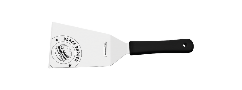 La espátula Black Burger Tramontina con lámina de acero inoxidable y mango de polipropileno negro de 6 pulgadas es la opción ideal para preparar una hamburguesa especial en un grill a carbón o en una plancha. Está desarrollada con una lámina de acero inoxidable de mayor espesor y de Acero estampado lo que evita su deformación. Su mango está hecho de polipropileno un material duradero que proporciona un manejo más firme y seguro. Además de todas estas características esta espátula es apta para el lavavajillas ¡lo que optimiza sus tareas en la cocina!
