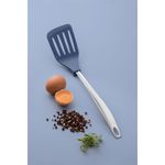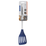 La espátula es una pieza indispensable en la cocina. Fabricada en nylon de gran calidad, la espátula con dientes Tramontina Movin en nylon con mango de acero inoxidable azul es ligera, práctica y no daña las ollas, lo que garantiza mayor durabilidad a sus utensilios. Además, cuenta con dientes laterales para cortes suaves. Es muy resistente y durable, soporta temperaturas de hasta 180 °C y tiene un diseño único y un color moderno. Es la elección correcta para dejar su cocina aún más práctica y bonita!