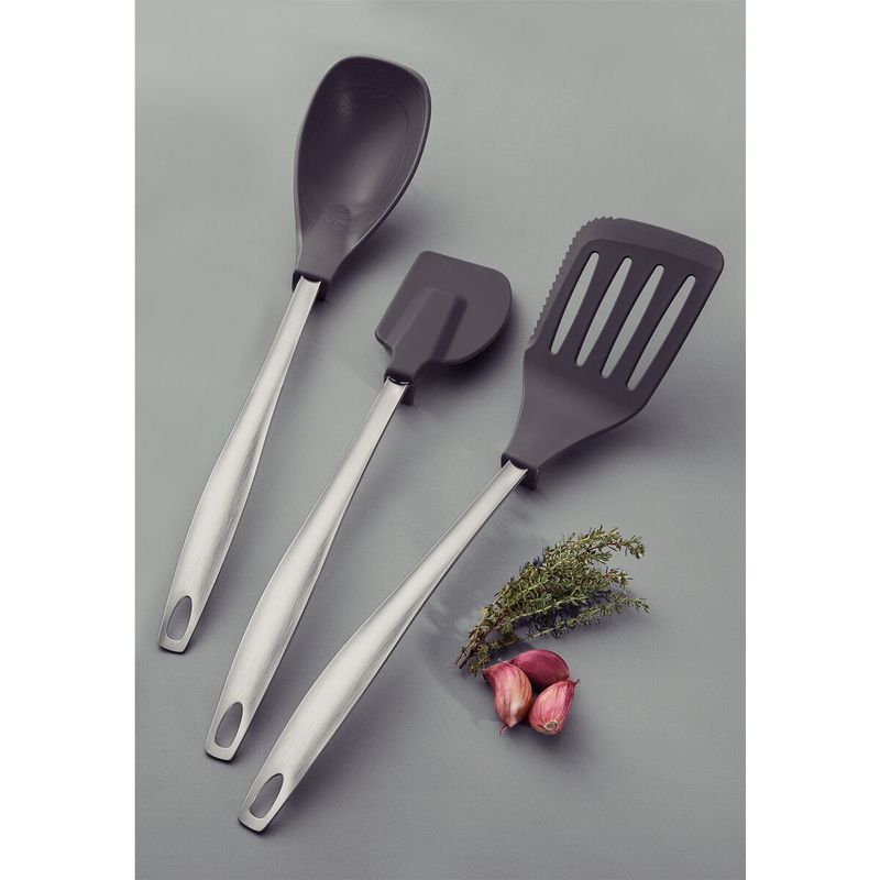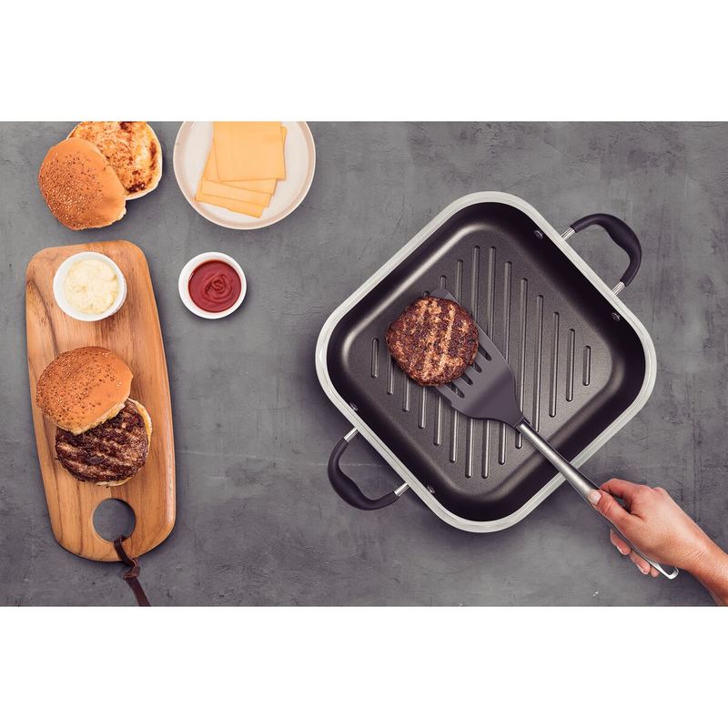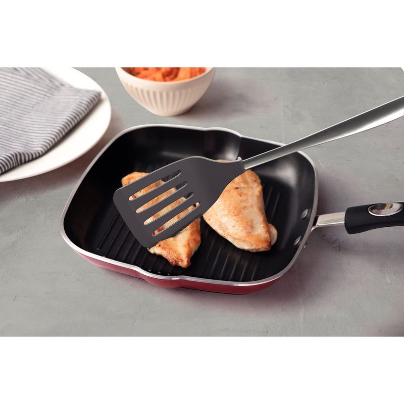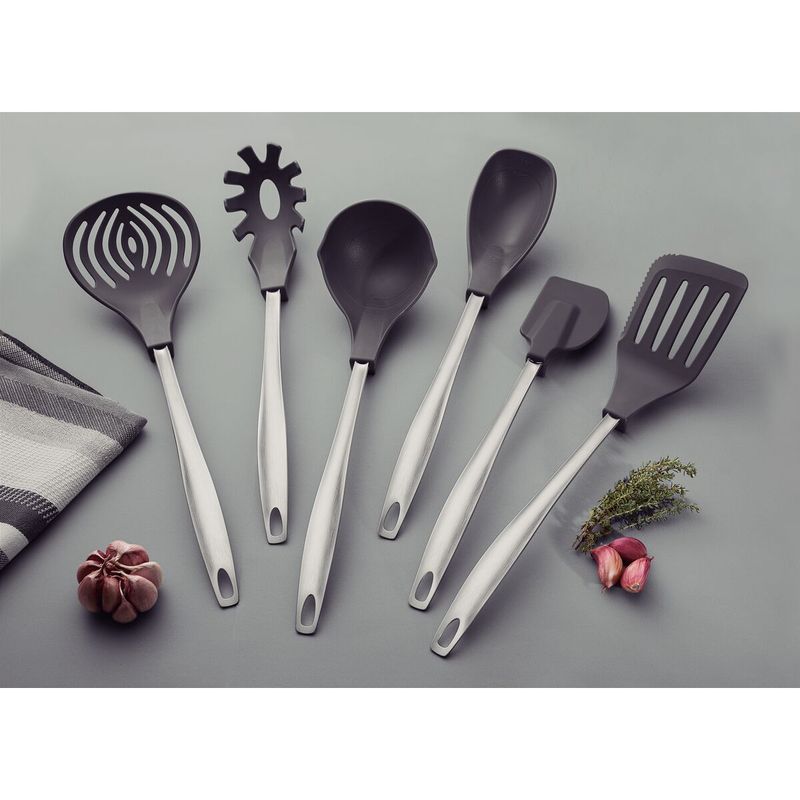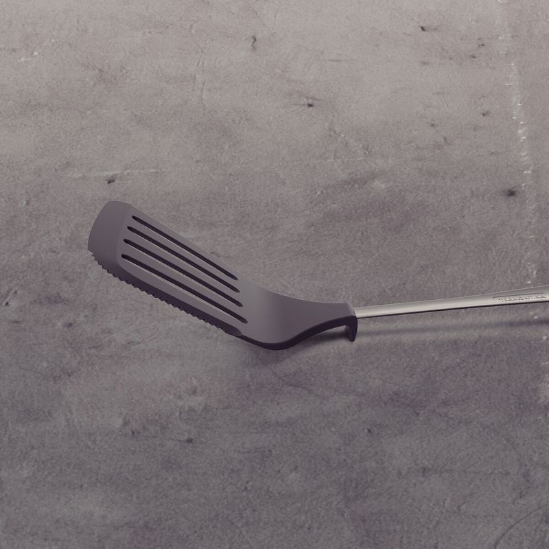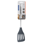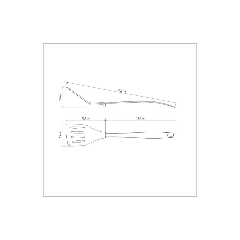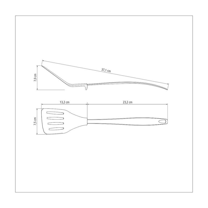 Necesita tener en su casa la espátula con dientes Tramontina Movin en nylon con mango de acero inoxidable gris. Es ligera, práctica e ideal para utilizarla en superficies con revestimiento antiadherente y cerámico, porque no las daña. Además, cuenta con dientes laterales para cortes suaves. La espátula también es un producto altamente resiste y durable, que puede usarse a temperaturas de hasta 180 °C y es apta para lavavajillas. Con un color único y un diseño innovador, es la mejor opción para equipar su cocina. Tramontina desarrolla productos de calidad siempre pensando en usted!