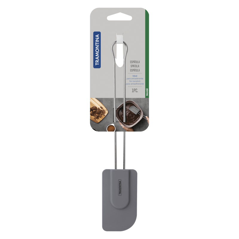 Con la espátula de silicona Tramontina Molde gris con mango de acero inoxidable, mezclar ingredientes y preparar tus recetas es ahora más fácil. Fabricada con mango de acero inoxidable y cuerpo de silicona que soporta a temperaturas hasta de 210 °C, es indispensable para tu día a día, porque se puede utilizar en superficies antiadherentes y cerámicas, porque no las perjudica. La espátula se puede llevar al lavavajillas y es la elección perfecta para hacer tu rutina en la cocina mucho más práctica.