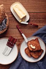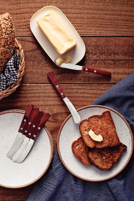 Su desayuno tendrá una compañía especial: la espátula para mantequilla Tramontina con lámina en acero inoxidable y mango en madera tratada Polywood rojo de 3 pulgadas. Producida para aportar más practicidad a la hora de untar mantecas, mermeladas y otras pastas en sus panes, está compuesta de una lámina de acero inoxidable con tratamiento térmico y mango de madera tratada Polywood con remaches de aluminio. Gracias a estas características, es una espátula altamente resistente a los impactos y las altas temperaturas, además de poseer una excelente durabilidad. Para facilitar su rutina diaria, es apta para lavavajillas y aporta más funcionalidad y practicidad. ¡Asegure la suya para que sus momentos en la mesa sean aún más sabrosos y llenos de estilo!