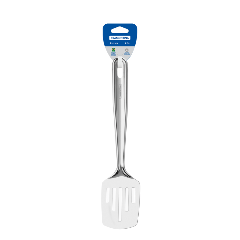 Con la espátula Tramontina perforada de acero inoxidable con terminación brillante de la línea Extrata, podrá realizar los más diferentes tipos de preparación con facilidad. Además, se fabrica completamente en acero inoxidable, proporcionando durabilidad, resistencia y belleza a su cocina. Su agujero en el mango permite incluirla en la decoración con sofisticación y practicidad.