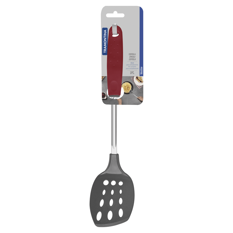 Cocinar es una pasión. La Espátula Tramontina Utilitá en Nylon con Mango de Polipropileno Rojo combina mucho con esto. El utensilio de nylon con resistencia de hasta 180 grados, alma de acero inoxidable y mango de polipropileno forma parte de la línea Utilita y es un gran aliado para los que quieren facilidad sin renunciar a la calidad y la belleza. Es ideal para el uso en ollas con revestimiento antiadherente y cerámico. Su cocina merece ese cariño.