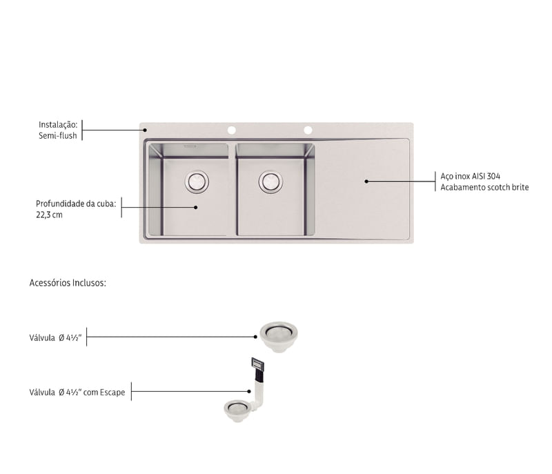 Marcados por línea recta y elegante, lo fregadero de empotrar Smooth 2C 34 EX le agrega valor al ambiente, además de combinar con cualquier estilo de decoración usado en la cocina.El acero inoxidable le garantiza mayor resistencia e higiene a las piezas. Opción perfecta para crear ambientes cómodos y atractivos.Pieza clásica y funcionales, que ofrece la sofisticación y el refinamiento de la cocina, de diseño moderno, con líneas más claras y radio redondeado que facilita la limpieza y la higiene, así como un acabado único.