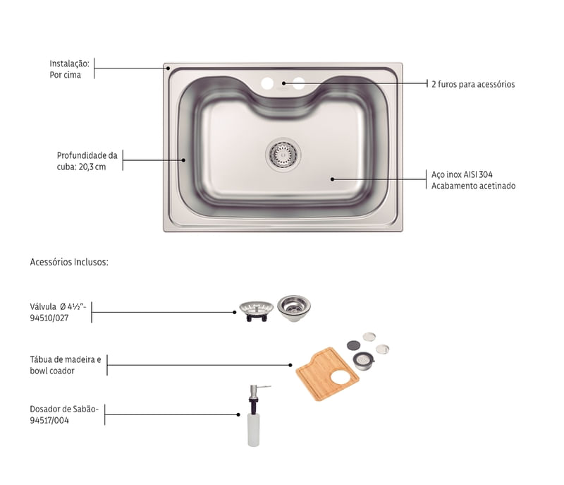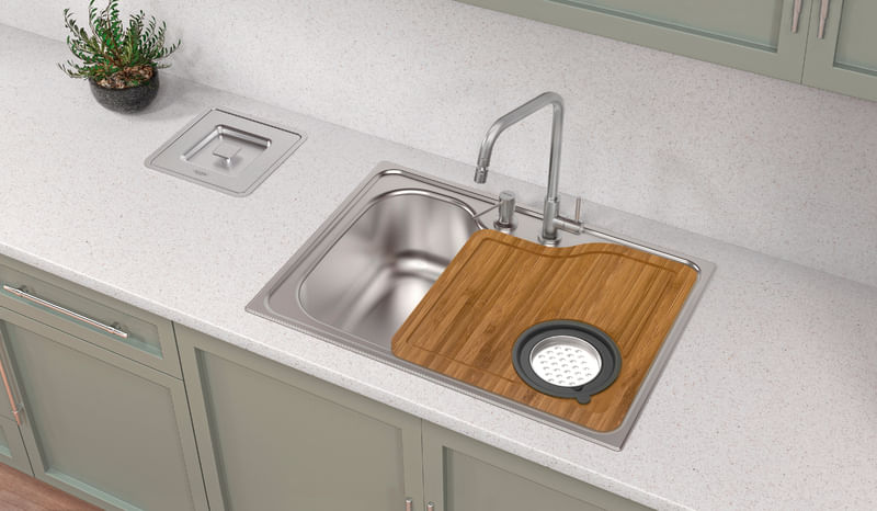 Complete su cocina y asegure mayor practicidad, con la cuba de superponer Tramontina Morgana 60 FX de Acero Inoxidable con dispensador de jabón, tabla de corte y cuenco rallador. Desarrollada en acabado cepillado, es resistente y aporta mayor calidad a su cocina, sin renunciar a la belleza y el estilo. ¡Sin duda alguna, es la cuba ideal para cualquier proyecto de cocina!