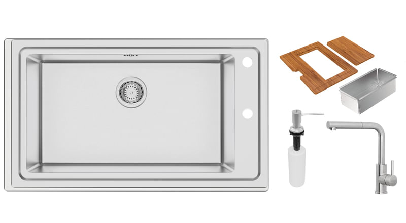 Para una cocina funcional y llena de estilo, cuente con la cubeta de sobreponer Tramontina Square 86 en acero inoxidable con accesorios. Elegante y sofisticada, tiene un acabado satinado, cuenta con 1 milímetro de espesor, 212 milímetros de profundidad y capacidad para 52 litros, mejorando sus tareas cotidianas. ¡Una cubeta completa que cuenta con dos perforaciones laterales para accesorios e incluye válvula, dispensador de jabón, tabla de madera, cesta coladora en acero inoxidable y mezclador Monde Plus!