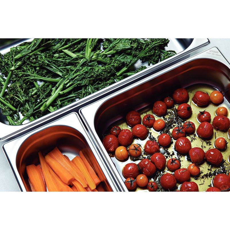 Crea tu selfservice con materiales de calidad. La cuba 1/3 de acero inoxidable sin asas y profundidad de 40 mm Tramontina está hecha totalmente de acero inoxidable, material de alta calidad, lo que ofrece una mayor durabilidad al producto. Para limpiarla es muy sencillo, ya que posee bordes internos redondeados que proporcionan más practicidad al pasar la esponja, sin riesgo de dejar residuos de comida. Para obtener más tranquilidad en tu día a día, cuenta con Tramontina!