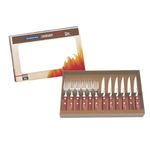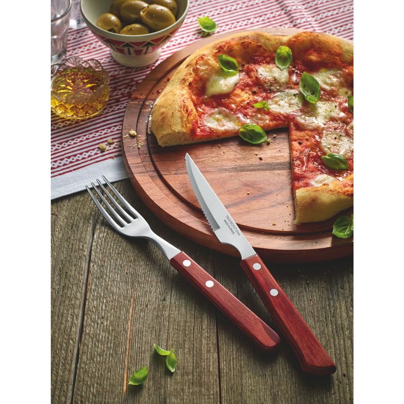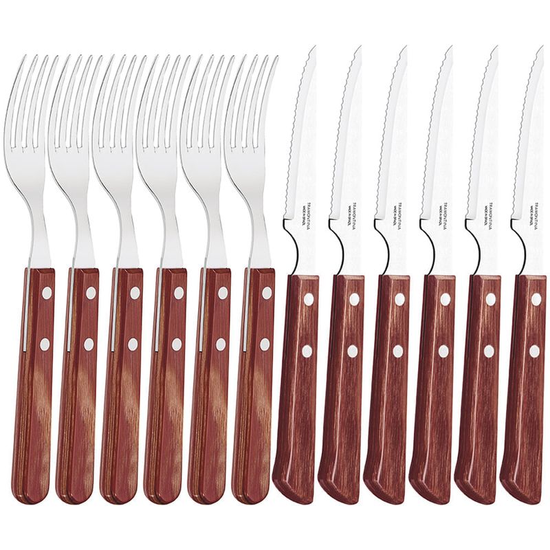 El juego contiene 6 cuchillos para asado 4", 6 tenedores de mesa.