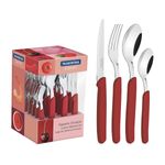Juego de cubiertos Carmel de acero inoxidable con mangos de polipropileno carmín 24 piezas
