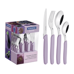 Ten todo el encanto de la línea Carmel en tu mesa con el Juego de Cubiertos Tramontina Carmel con Láminas de Acero Inoxidable y Mangos de Polipropileno Lila 24 Piezas. Un juego de cubiertos bellísimo que lleva delicadeza a todas las ocasiones. Los cubiertos se fabrican con láminas de acero inoxidable y espesor que mantienen la forma inalterada, incluso con el uso intenso, contando con mangos de polipropileno altamente durables. Los cuchillos tienen más durabilidad, porque las láminas de acero inoxidable reciben tratamiento térmico. El juego de cubiertos proporcionará más color, alegría y liviandad a todos los momentos, ya sean del día a día u ocasiones especiales, haciendo que tus comidas se transformen en recuerdos inolvidables. El juego contiene: 6 Cucharas de Mesa, 6 Cucharas de Té, 6 Cuchillos para Asado 4'', 6 Tenedores de Mesa.