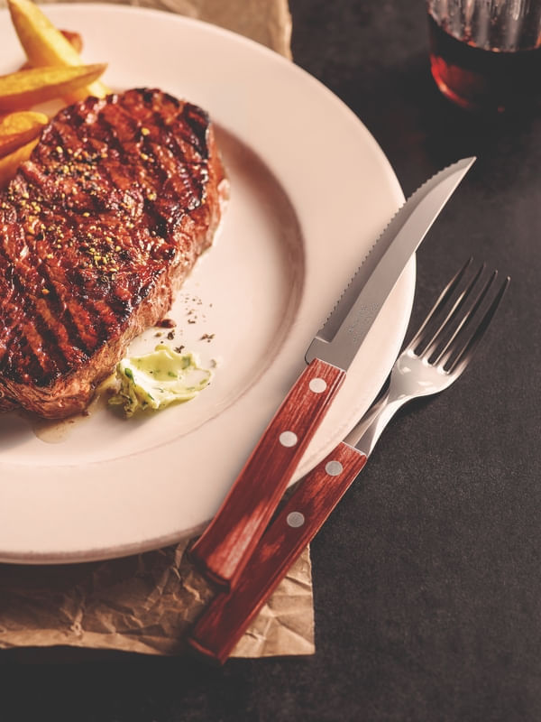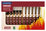 Lúzcase con el asado y con el servicio de mesa con el juego de cubiertos para asado Tramontina de acero inoxidable con mango rojo Polywood, 12 piezas. Un juego completo de la línea Churrasco que ofrece cuchillos y tenedores con láminas de acero inoxidable y mangos de madera tratada Polywood resistentes a impactos y altas temperaturas, llevando belleza a la mesa, además de alta calidad y durabilidad. La elección ideal para los que desean que todos puedan tener una excelente experiencia en el momento de apreciar un buen asado. El Juego Contenido: 6 Cuchillo Asado 5" Polywood y 6 Tenedor Mesa Polywood