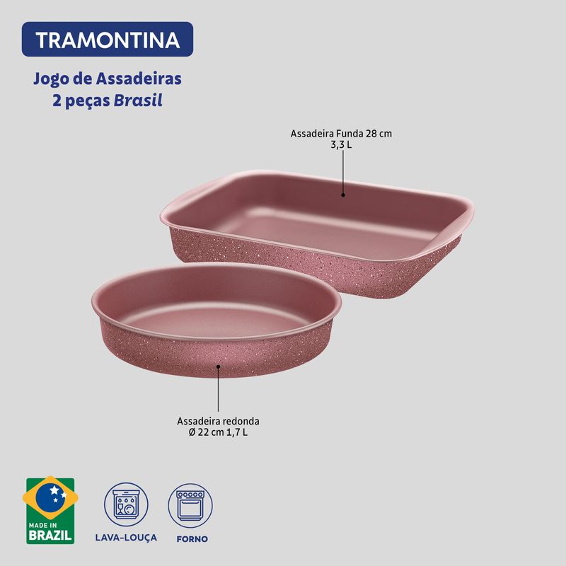 Para una preparación fácil y ágil de sus recetas, el juego de asaderas Tramontina Brasil en aluminio con revestimiento interno y externo en antiadherente Starflon Max rosa de 02 piezas será su mejor ayudante en la cocina. Fabricado con materiales de alta calidad, como el aluminio y el revestimiento en Starflon Max, las dos asaderas que integran el juego aseguran toda la practicidad que necesita en su día a día y le ayudan a preparar deliciosas recetas asadas. El espesor del aluminio y las capas de antiadherente cocinan los alimentos de manera uniforme y evitan que se peguen en la superficie. ¡Las asaderas también son muy fáciles de limpiar y aptas para llevar al lavavajillas, lo que facilitará sus tareas en la cocina!