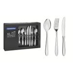 Las 42 piezas del juego de cubiertos Tramontina de acero inoxidable con cuchillos de mesa y terminación en alto brillo de la línea Satri son hermosas y útiles para la mesa. Las cucharas con cuenca en formato simétrico y bordes cuidadosamente redondeados. Tenedores con dientes pulidos en la parte interna, con formato apropiado para la boca y bordes redondeados para proporcionar más comodidad en el uso., Cuchillos totalmente templados, lo que le otorga más durabilidad al filo de corte dentado y más resistencia a la corrosión, y por sus características de templabilidad, no arañan la porcelana. Todas las piezas poseen terminación en alto brillo, dejando todas las comidas más especiales y realzando su cocina. Además, las piezas vienen en un bello estuche.