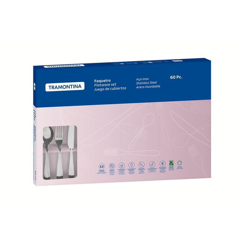 To make your occasions more special, Tramontina's 60piece stainless steel barbecue set from the Laguna line is the right choice. Perfect for adding beauty to your kitchen, all 60 pieces have detailing on the handle and a contemporary mirror finish. The pieces are made entirely of stainless steel and are suitable for different settings. The set includes special steak knives for barbecues, making those occasions even more enjoyable. The flatware pieces guarantee good taste and features that make them great choices for your kitchen. They have an exclusive design that makes them more comfortable to use. The knives are tempered, which ensures a longerlasting cutting edge and greater resistance to rust. Due to these features, they won?t scratch the dishes. These are versatile, attractive pieces that will become your best friends in the kitchen.