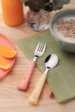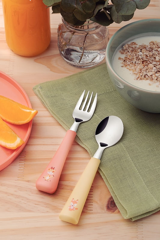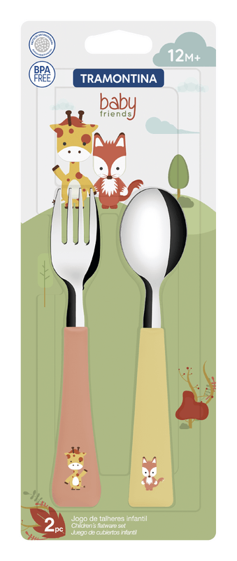 El juego de cubiertos infantil Tramontina Baby Friends con láminas de acero inoxidable y mangos de polipropileno coloridos de 02 piezas fue especialmente pensado para hacer que las comidas de los niños sean mucho más encantadoras. Sus piezas se fabrican con láminas de acero inoxidable y mangos de polipropileno coloridos, que garantizan un manejo práctico y seguro, dándole mucho más autonomía y confianza al niño. ¡Elija Tramontina y observe la evolución en la rutina de alimentación de su bebé!
