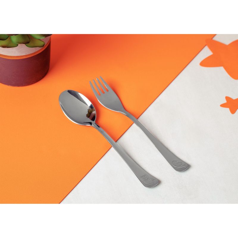 Para incentivar la autonomía de los niños y hacer el momento de la comida más divertido el juego de cubiertos para niños Tramontina de acero inoxidable, terminación brillante con dibujo en alto relieve 2 piezas de la línea infantil Baby Friends es la mejor opción. Con dibujos estampados en alto relieve, cada uno es diferente del otro. La elección perfecta para papás y mamás que buscan productos prácticos y de calidad para los pequeños. El juego está hecho totalmente de acero inoxidable, por lo tanto, las piezas no sueltan residuos en los alimentos, manteniéndolos sanos, además de ser altamente resistentes. Los cubiertos cuentan con un formato ergonómico, que le permite al niño utilizar con más facilidad el cubierto. También pueden lavarse diariamente en el lavavajillas.