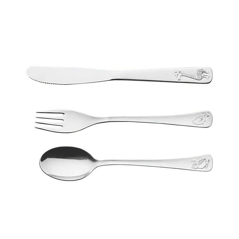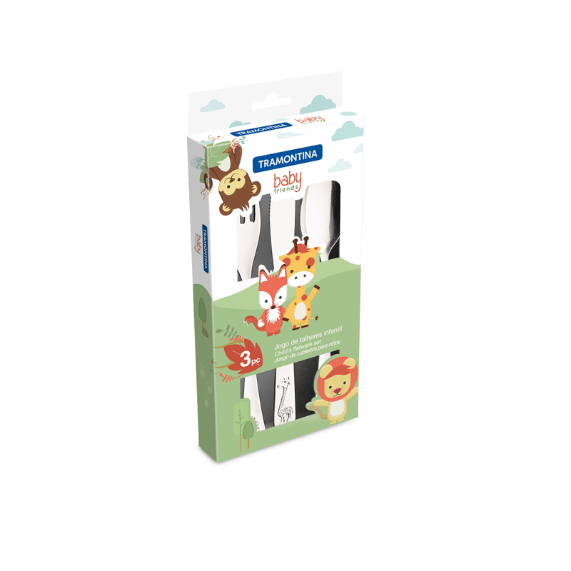 Con el juego de cubiertos para niños Tramontina de acero inoxidable terminación brillante con dibujo en alto relieve 3 piezas la hora de la comida será mucho más divertida. La línea infantil Baby Friends es especialmente creada para los pequeños, proporcionando piezas ergonómicas y con variación de dibujos en alto relieve, facilitando su manejo y dejando el momento más alegre. Cada cubierto está hecho totalmente de acero inoxidable, por esto no sueltan ningún tipo de residuos en los alimentos y los padres pueden estar tranquilos.